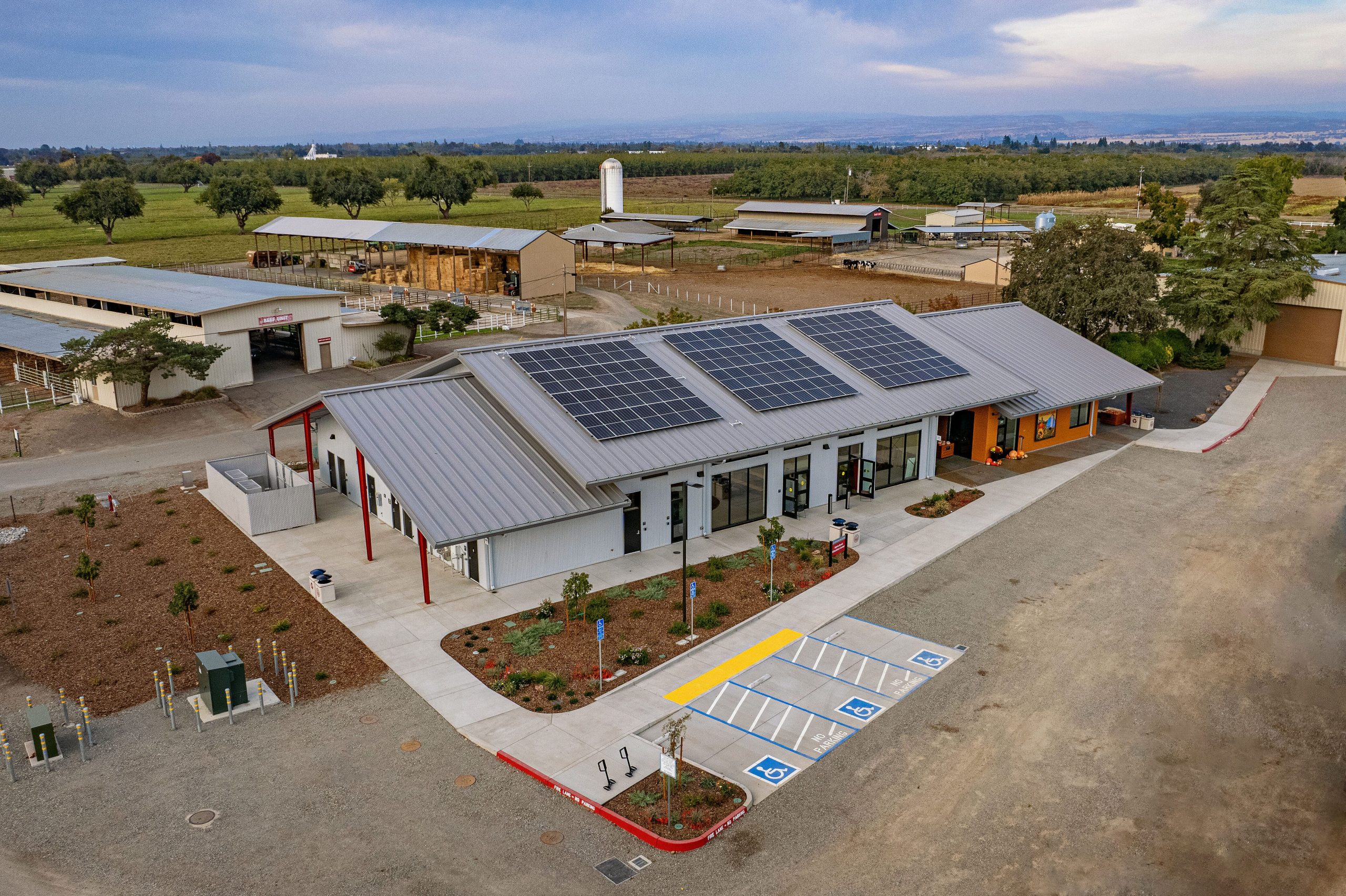 The project consists of the construction of a new Agricultural Learning and Training Center located on the CSU Chico University Farm. This facility encompasses 10,000 square feet of space and includes farm offices, conference rooms, a farm store, divisible classrooms and/or conference space, a full commercial kitchen and storage. Photovoltaic panels were installed on the roof to provide sustainable power to the facility.
